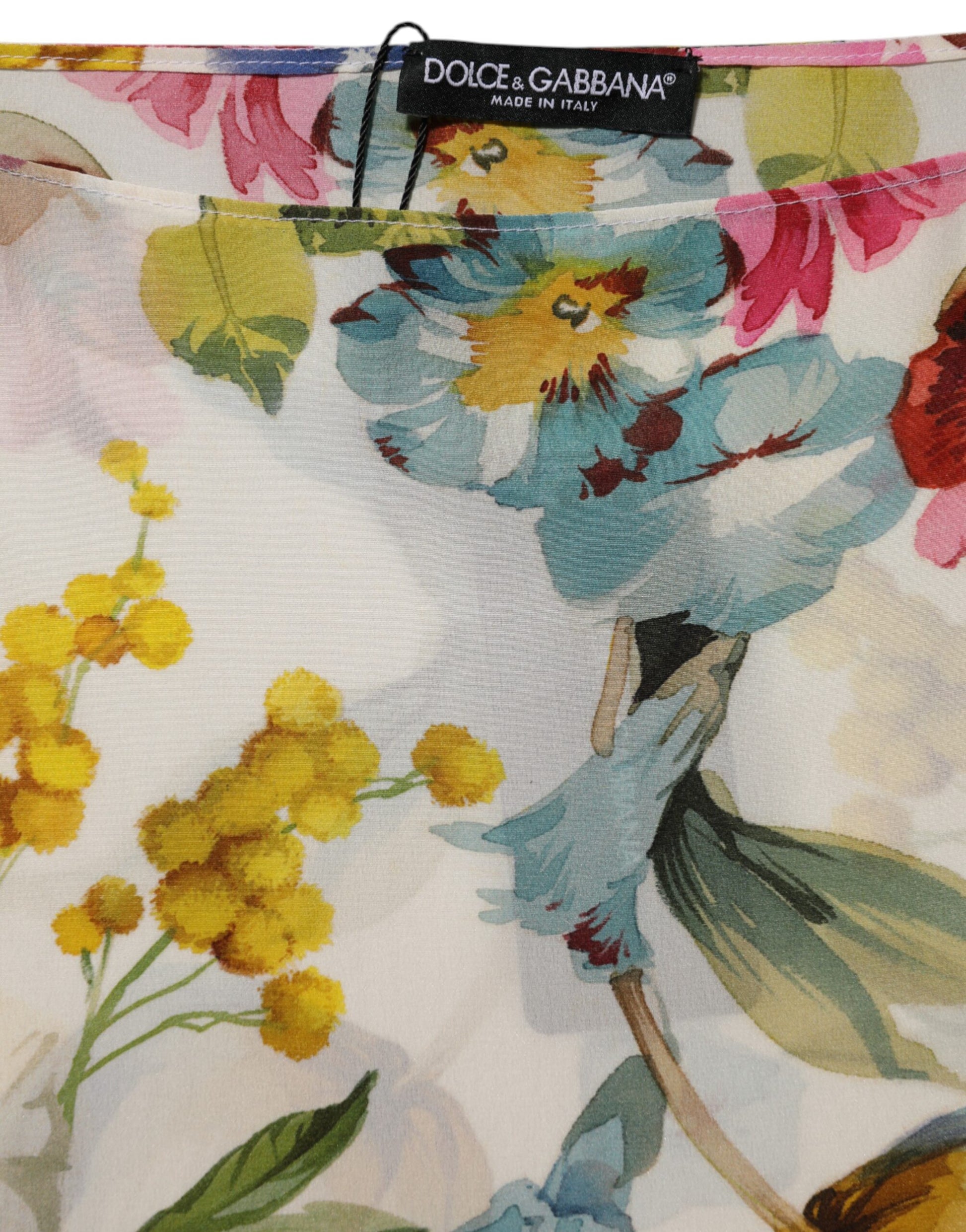Dolce & Gabbana White Floral Print Silk Sheath LongGown Dress