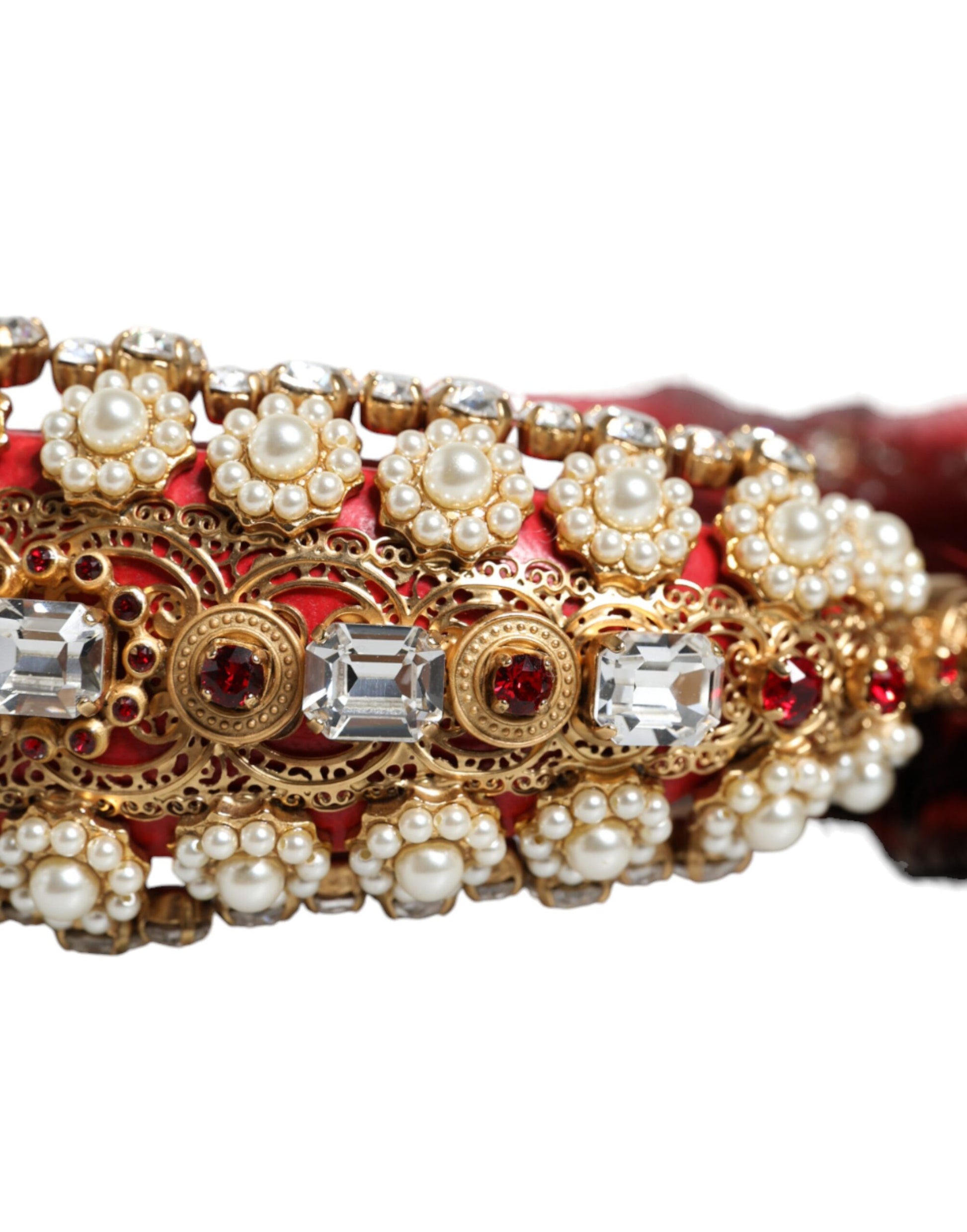 Dolce & Gabbana Red Gold Crystal Fur Headset Audio AUX Headphones